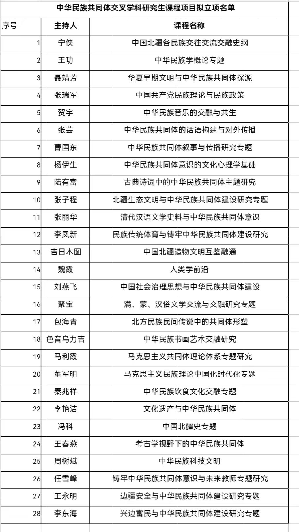根据工作安排,按照有关规定,现将中华民族共同体学课程研发专项项目立项名单予以公示。
